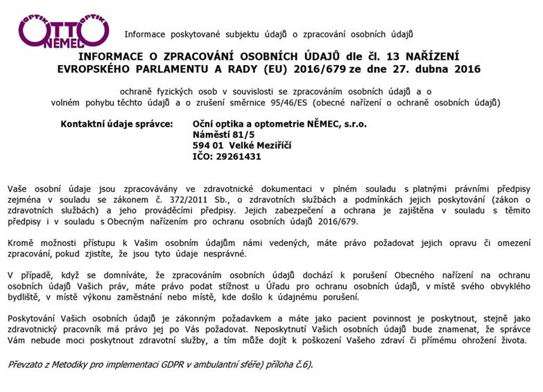 Správcem osobních údajů je společnost Oční optika a optometrie NĚMEC, s.r.o., která provozuje oční optiku